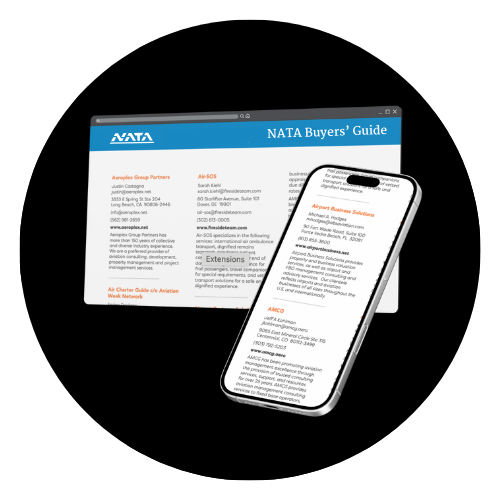 Showcase your business where it matters most with NATA’s annual Buyers’ Guide—the go-to resource connecting our regular members with the products and services you provide. Featured in the Fall issue of the Aviation Business Journal, displayed online at avbizjournal.com, and distributed at NBAA-BACE and NATA’s Aviation Business Conference, this highly referenced guide puts your company in front of the right audience, all at no cost to you. Explore the 2025 Buyers’ Guide here.